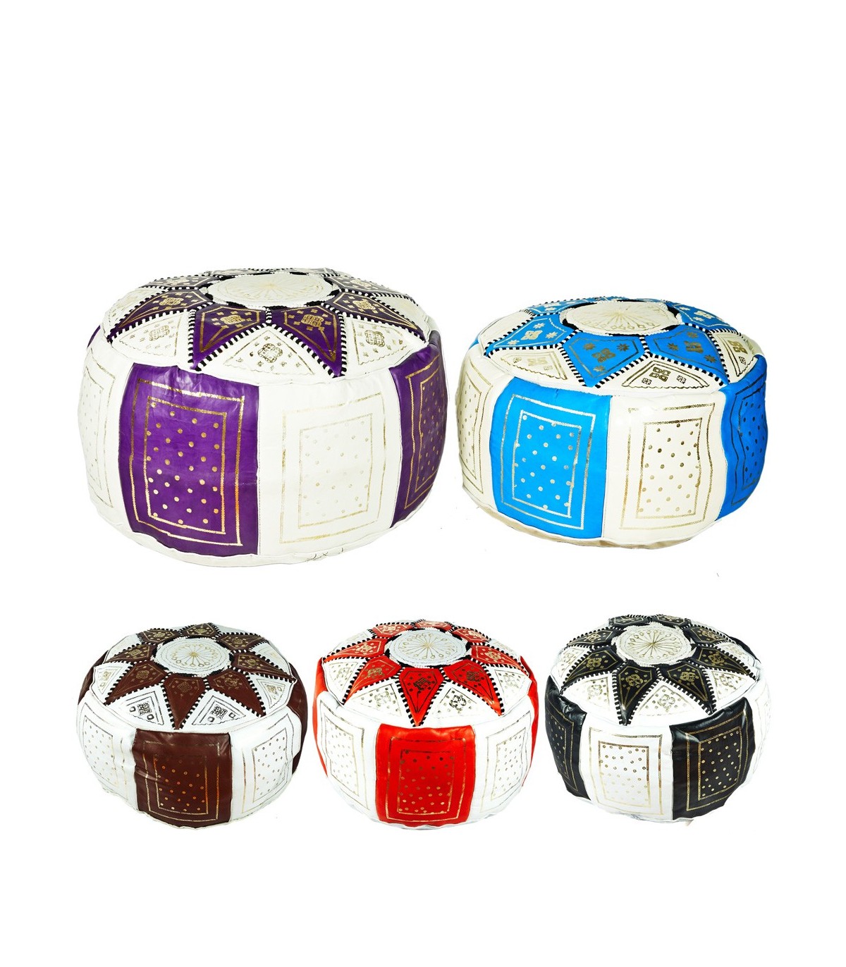 Pufe marroquino estilo árabe andaluz feito à mão em couro. Feito em Marrocos, feito à mão, decorado com mosaico colorido e decorado com motivos dourados. Ideal para decoração no estilo Arabian Nights. Para relaxar no...