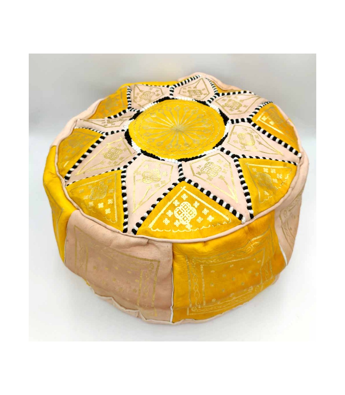 Pufe marroquino estilo árabe andaluz feito à mão em couro.