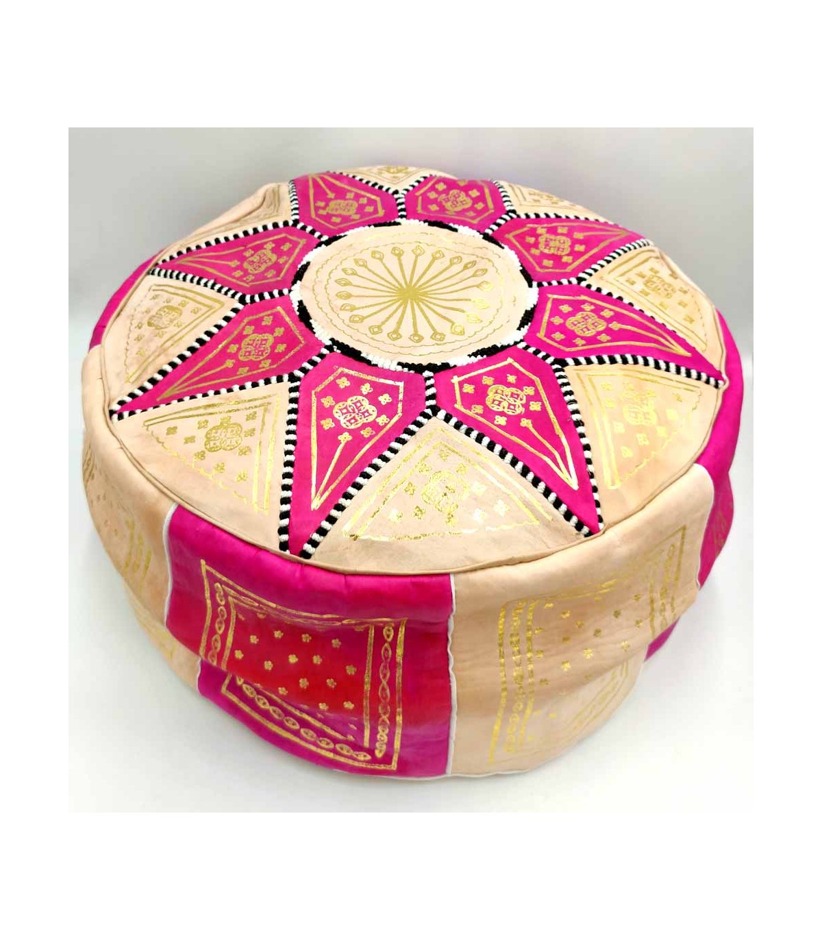 Puff árabe 100% couro - artesanato marroquino cor rosa - modelo Laun Zahri