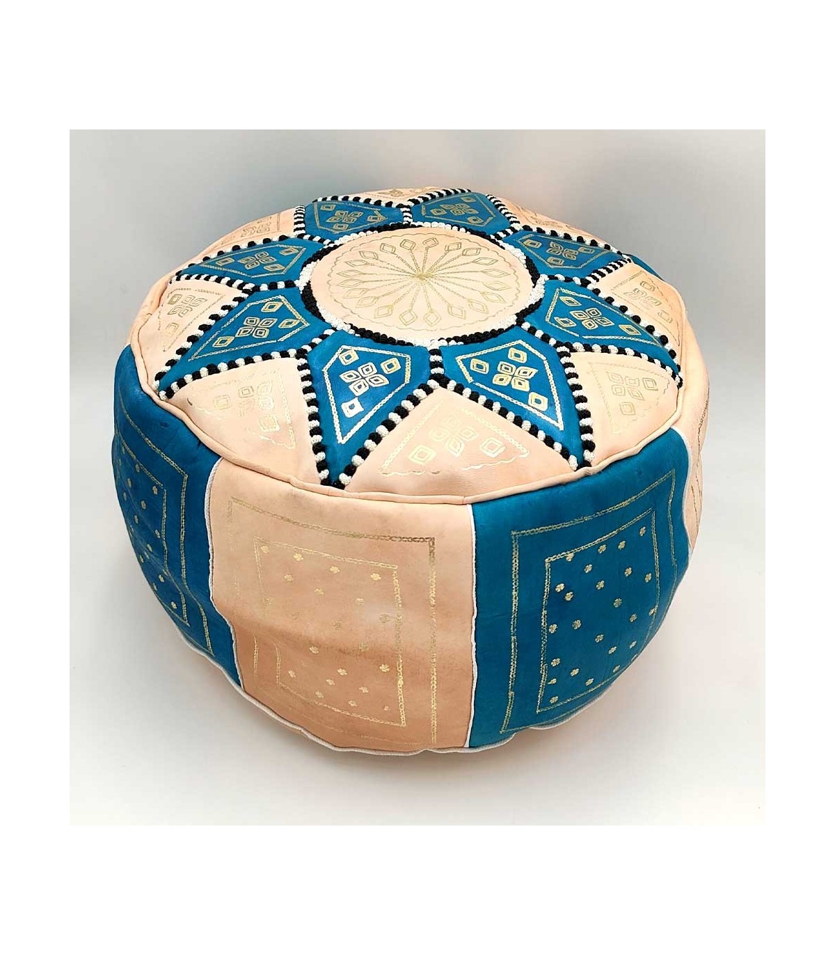 Pufe marroquino estilo árabe andaluz feito à mão em couro.
