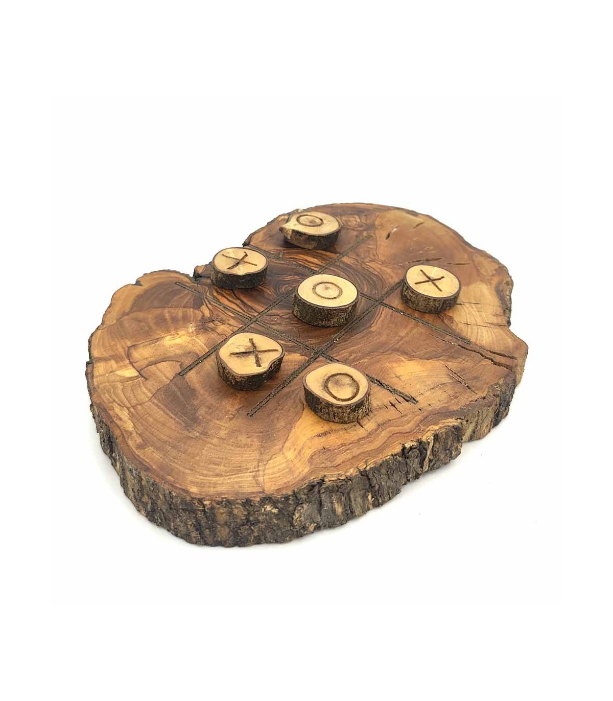 Jogo 3 em linha feito em Granada, Espanha em madeira de oliveira artesanal. Fabricado por Jaima Alkauzar. p>
