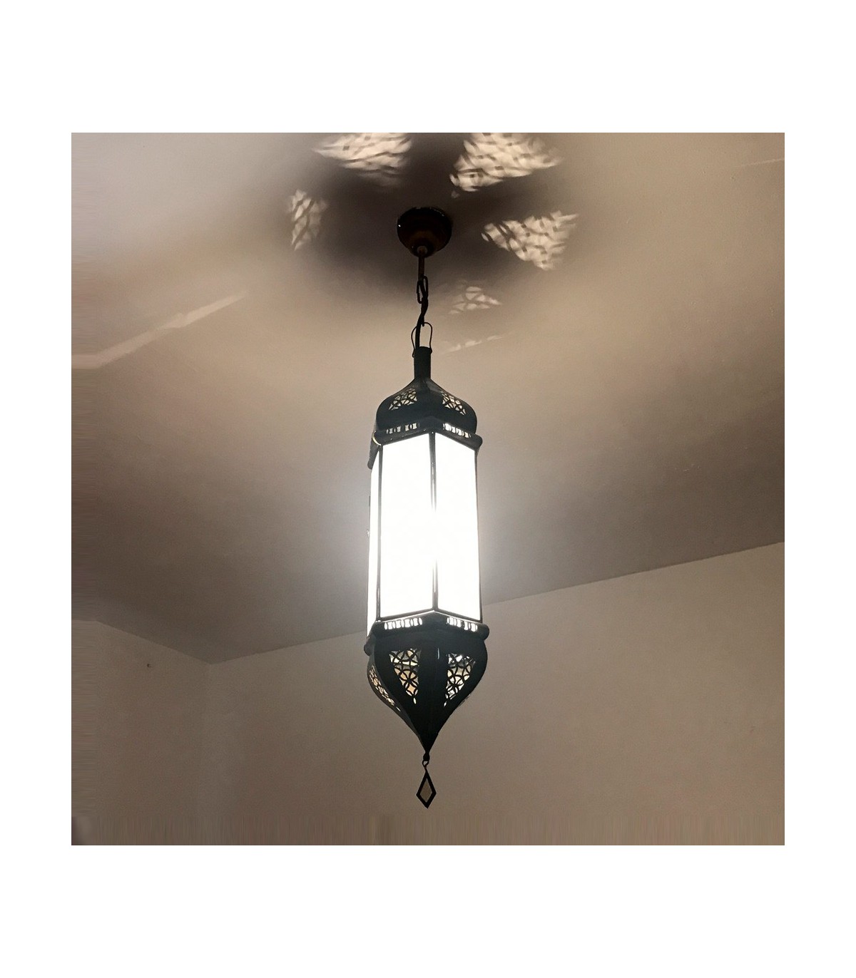 Candeeiro suspenso marroquino. Medidas:20 cm de diâmetro x 45 cm de comprimento *** Se você quiser esta lâmpada com instalação elétrica, adicione-af =...