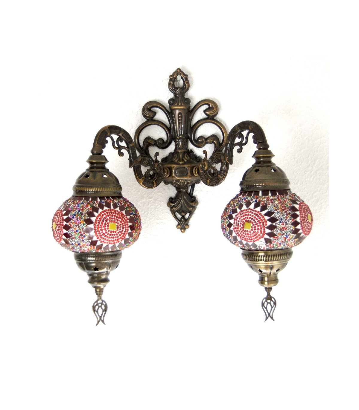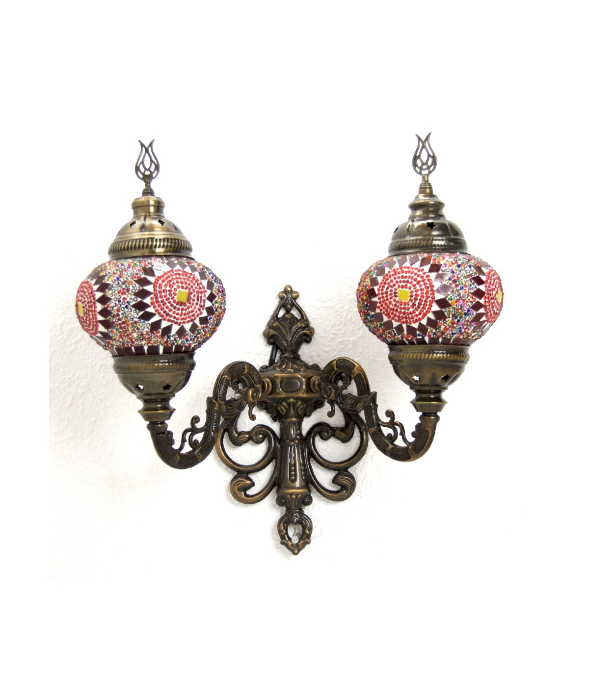 Candeeiro de parede turco, abajur duplo ou globo, artesanal com vidro de murano.