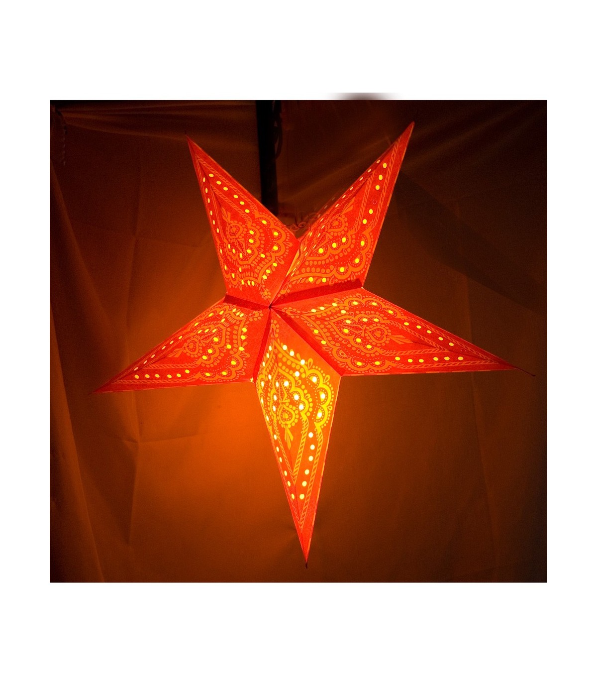 Lâmpada de estrela de papel. Disponível em muitas cores. Existem dois tipos, um liso e outro com desenhos (ver fotos). Sendo dobrável é ideal para o transporte. Realmente preciosa. Crie um ambiente de cor em sua casa.