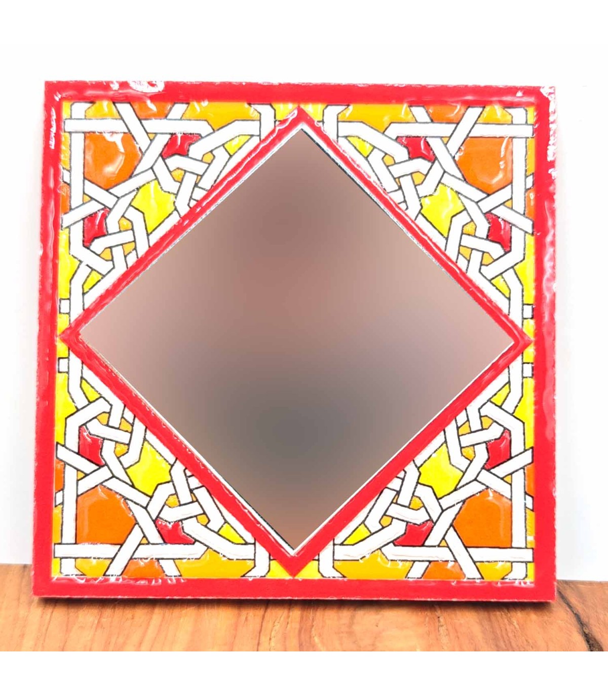 Azulejo espelho estilo Alhambra de Granada, com detalhes geométricos e acabamento espelhado. Com medidas de 11 cm x 11 cm, é uma peça decorativa elegante e única, ideal para quem procura combinar tradição e modernidade em sua casa. Perfeito para embelezar qualquer espaço com sofisticação.