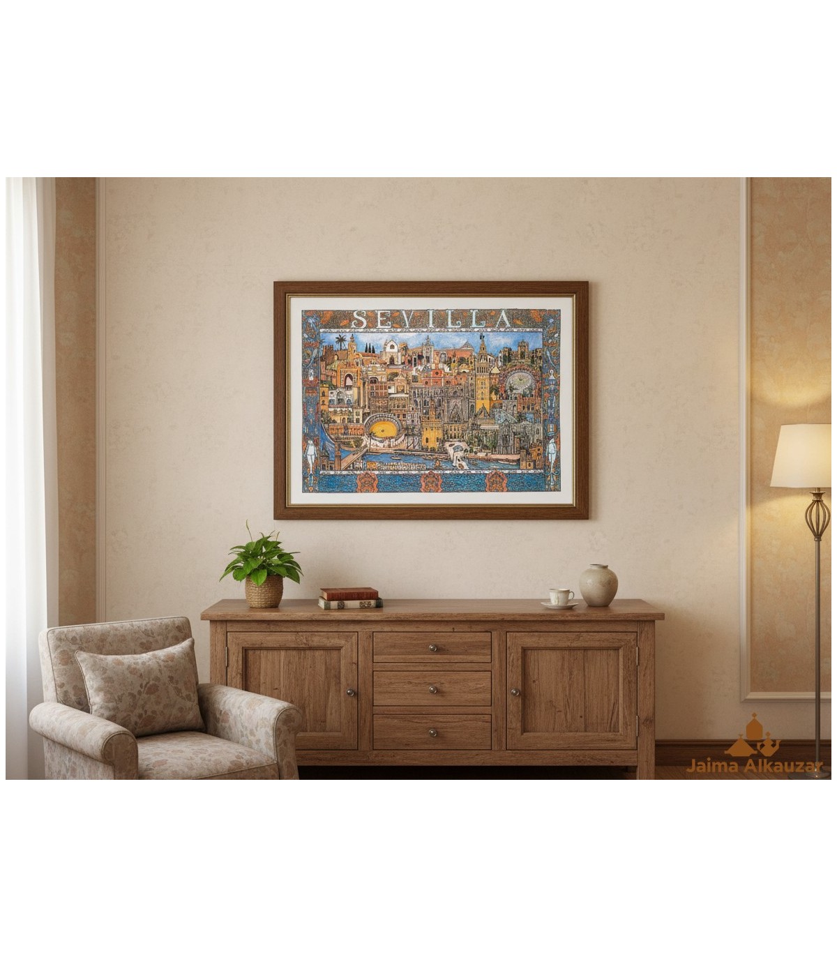 Uma obra que presta homenagem à Sevilha eterna, cidade de luz, música e paixão, perfeita para quem procura uma peça decorativa com alma andaluza.