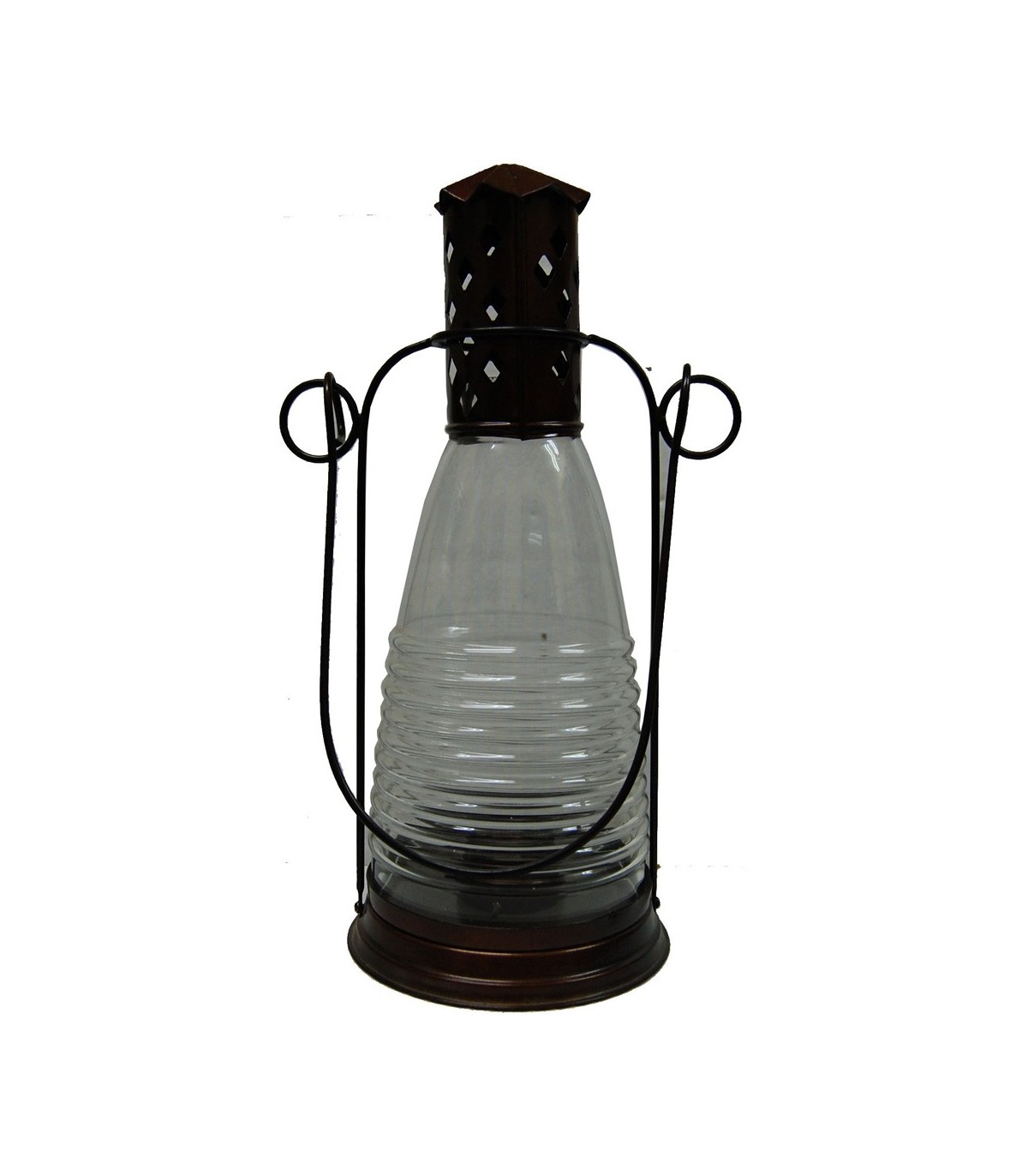 Lanterna da vela. Feita em ferro e vidro. Dimensões: Diâmetro: 13 cm altura: 32 cm.