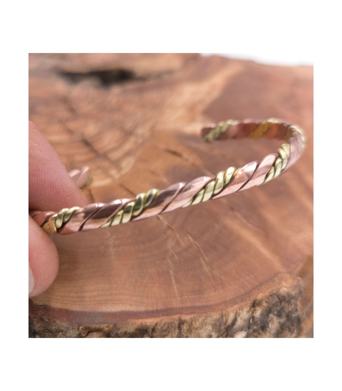 Bracelete em cobre e latão martelado feito à mão em Marrocos. Pulseira ou bracelete muito elegante.