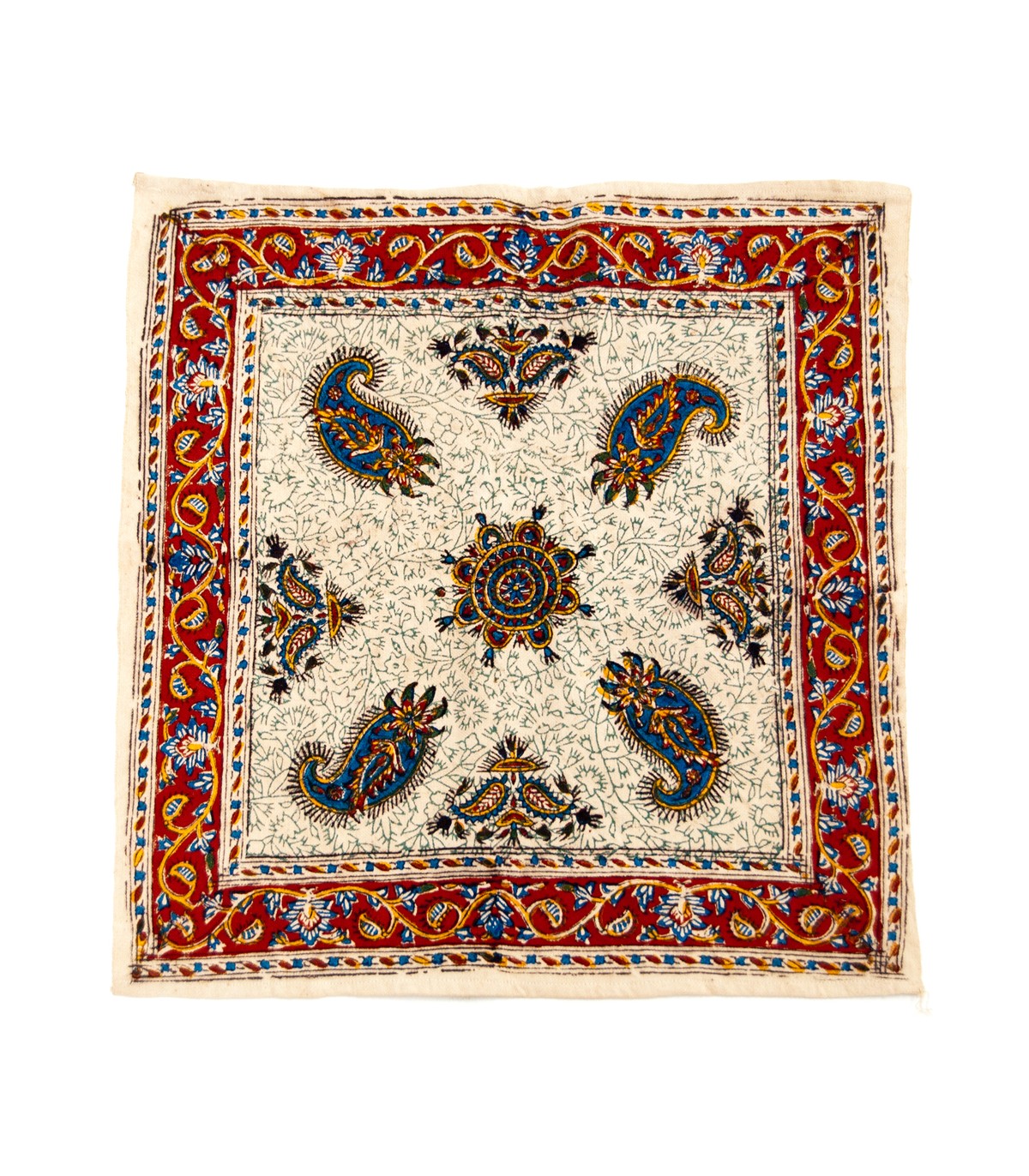 Tapete de algodão 100% artesanal, fabricado no Oriente Médio com corantes vegetais naturais. Com um design quadrado de 40x40 cm, é perfeito para adicionar um toque autêntico e sustentável à sua casa.