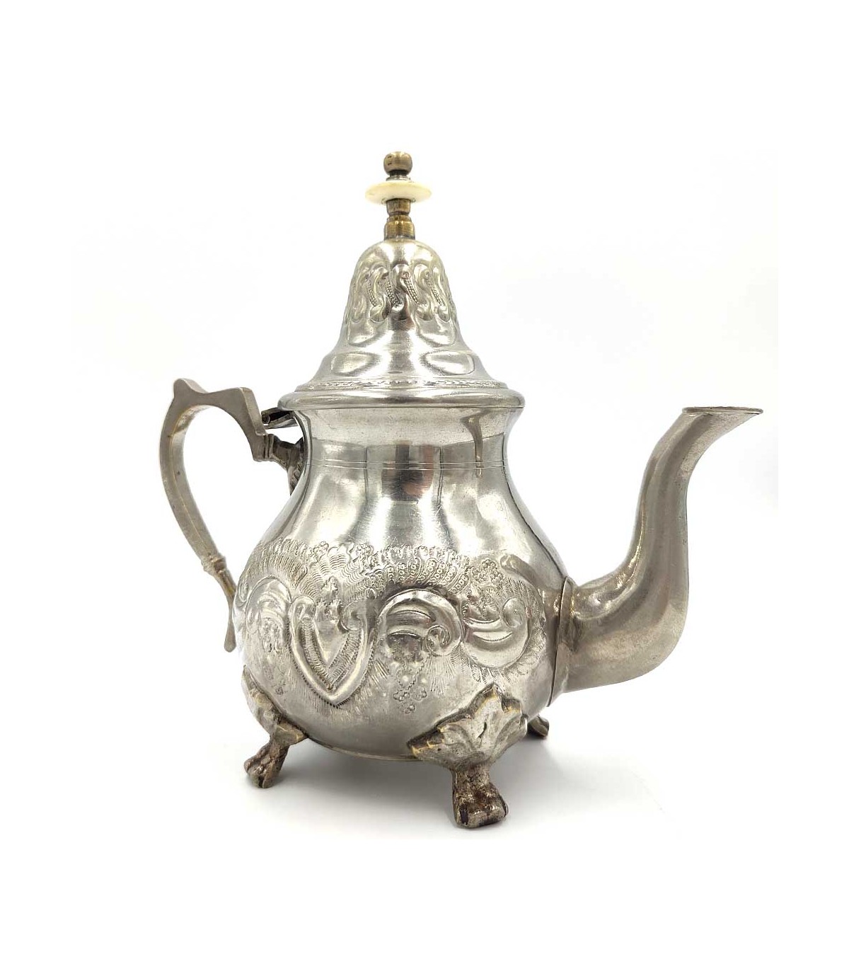 Bule antigo de prata de níquel feito e esculpido à mão por mestres artesãos em Marrocos.