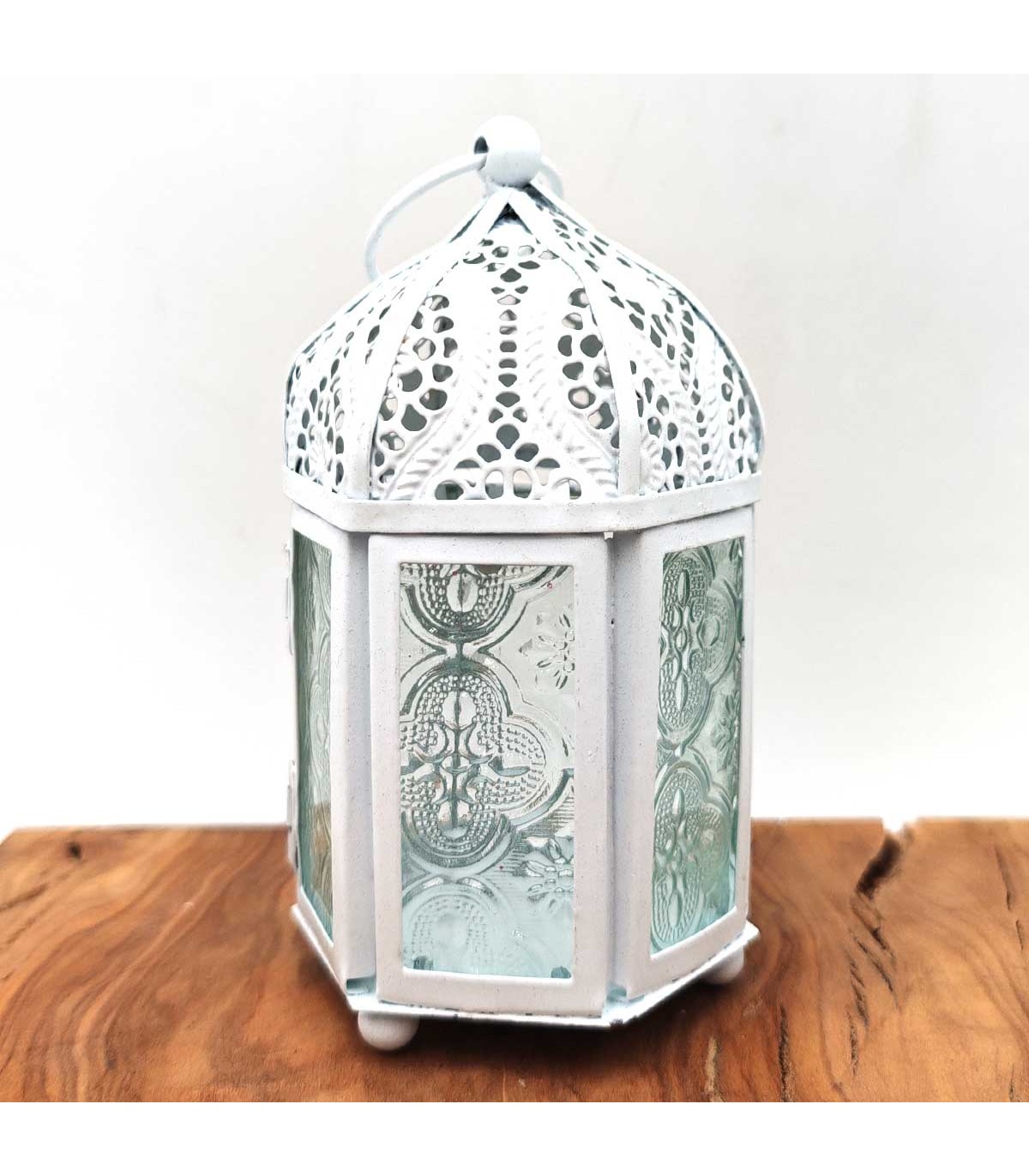 Adicione um toque de elegância e calor à sua casa com este lindo lanterna árabe vazada em branco. Com seus delicados e detalhados cortes geométricos, esta lanterna cria uma atmosfera mágica, ideal para qualquer espaço, seja interno ou externo.